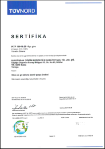 2016 yılından itibaren otomotiv sektörünün en üst standardı olan IATF 16949 gerekliliklerini sağlayarak kaliteli ürün üretiminin devamlılığını sağlamak ilk hedeflerimizdendir.